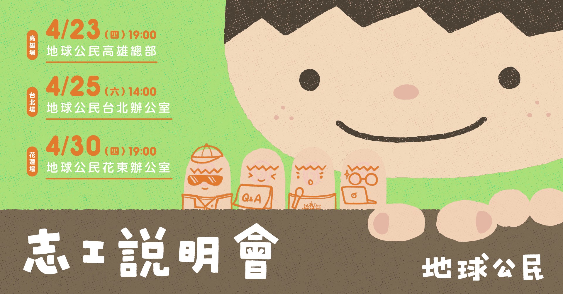 4月 【高雄、台北、花蓮現場】地球公民志工說明會