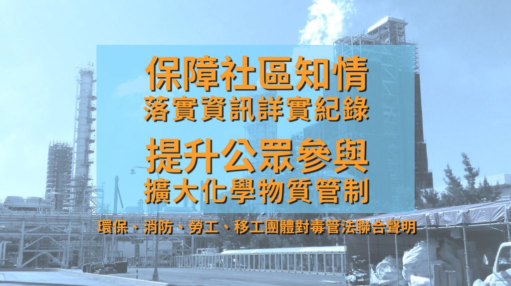 【聯合聲明】〈保障社區知情、提升公眾參與〉環保、消防、勞工、移工團體對毒管法聯合聲明