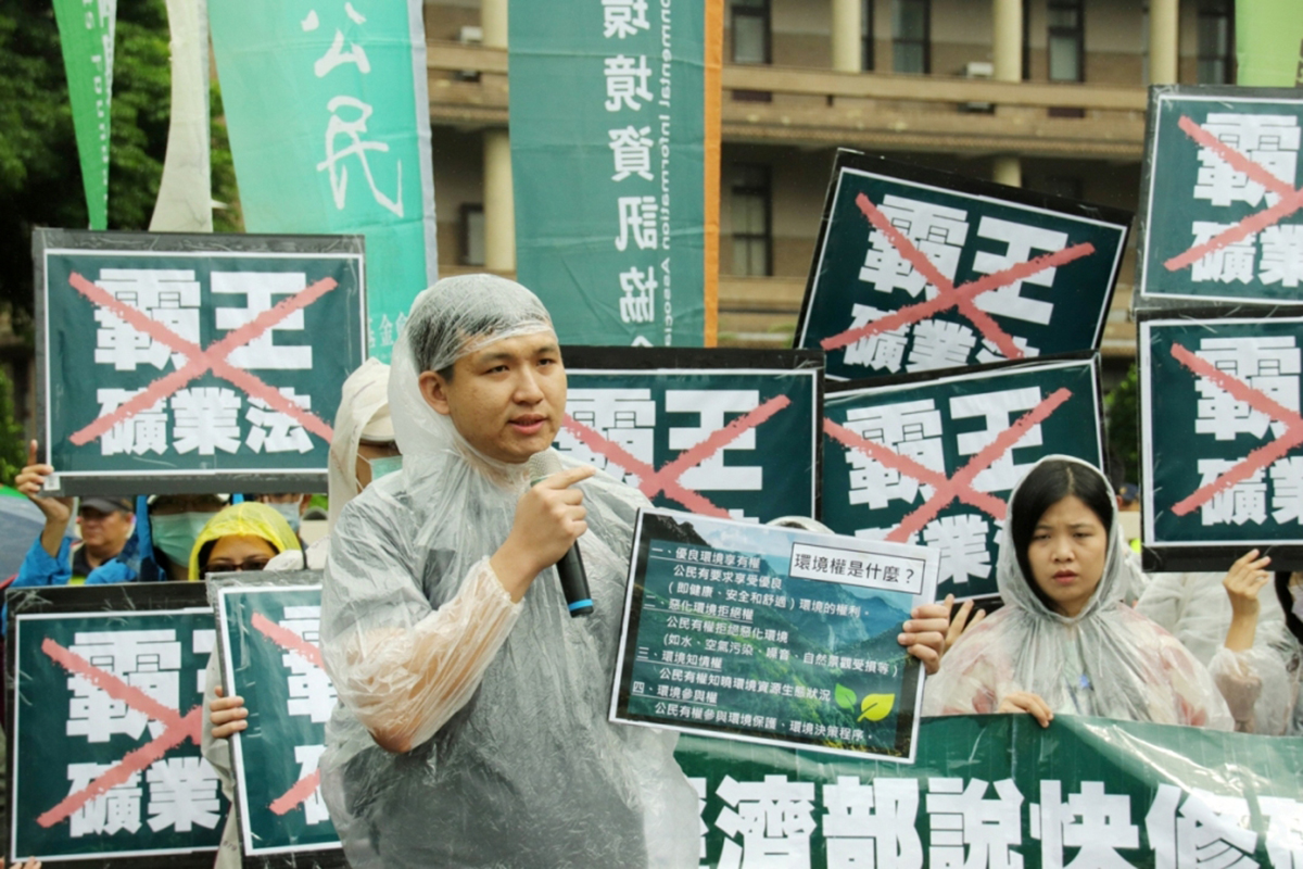 環境法律人協會專員徐孟平要求行政院蘇院長,讓礦業開發回歸正常的檢核程序,確定經濟發展與環境永續的平衡點,盡速修改《礦業法》。(蔡馥宇攝)
