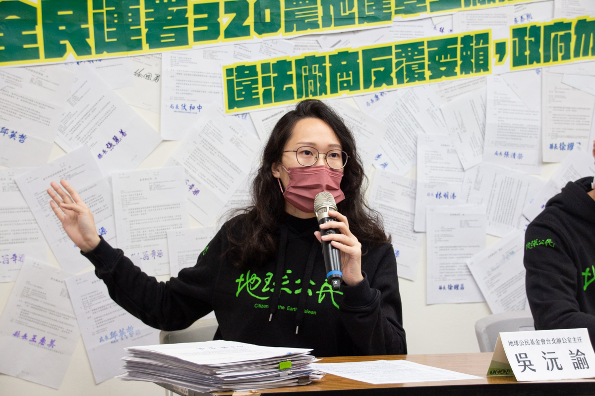 地球公民基金會山林國土組研究專員吳沅諭呼籲,320後公開未登記工廠名單於網路平台,並彙整給合法廠商與銀行,全民連署監督政府執行斷水斷電,守護農地與糧食安全。(圖/地球公民基金會)