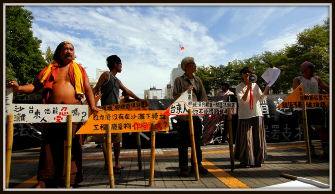 九月在台東縣府前要求拆美麗灣違建的記者會,我們大聲質疑為何不依法院判決,拆除美麗灣。